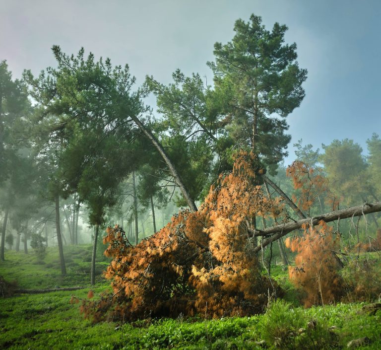 אני מתעד עצים חיים ועצים שקרסו במורדות הכרמל, מאניש אותם ומנסה לדמיין את התחושות והרגשות שלהם ולהציג אותם בדימויים שלי.